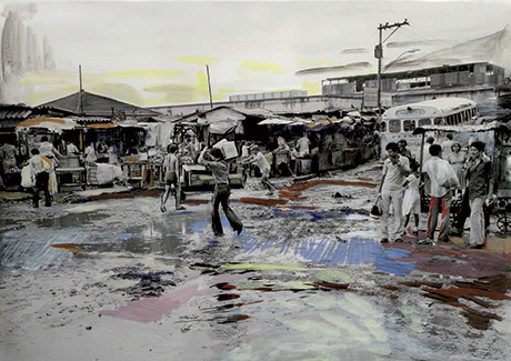 "Depuis de longues années, en parallèle à l’amitié, j’observe son travail avec une fascination trouble. Ses peintures, certes, servent l’édition par le noble art trop peu considéré, de l’illustration, mais surtout , elles s’imposent par une radicale économie" Enki Bilal
