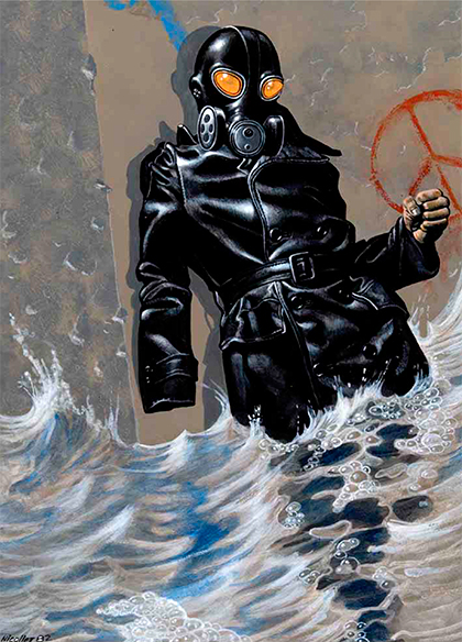 Il faut le dire, l’enjeu essentiel, mais complexe, avec l’art de Jean Michel Nicollet, consiste à comprendre ce qu’il cherche à montrer. Pour cela, un conseil : se méfier d’emblée de la première impression qui le rangerait dans la catégorie des illustrateurs surdoués, et plutôt tenter de se projeter au-delà de ce qu’il donne à voir.